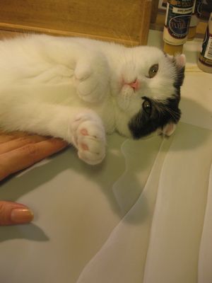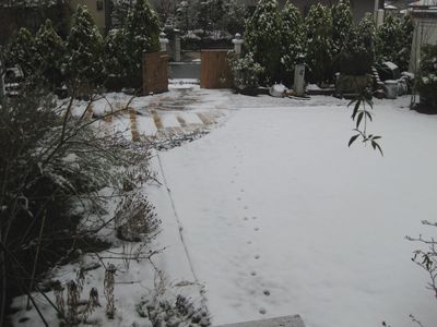 雪が舞っています・・・・ 今日も雪・・・寒いです・・・今年は、なかなか春がやってきませんね今週から4月だと言うのに、庭は寒々しい状態・・・楽しみにしているガーデニングもおあずけです。マルちゃんも雪に興味身心・・・・・丸い後頭部がセクシーです・・・・今日も新しい作品を1つ描きました♪ 画像の作品は先週描いたもの。一部分だけお見せします♪どこに出没するかは・・・・まだ内緒♪