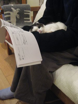 マルちゃんは、夜になると慎ちゃんのおひざを狙います。彼女はあったかいところが大好き♪私はゆっくり座っていることが少ないので、慎ちゃんが犠牲に・・・この満足そうな「してやった顔」をご覧ください。マル「なによお・・いいじゃないのよお~~~ パパだって喜んでるんだし~」・・・・・そうね・・・・・ 慎ちゃんはうれしくて仕方がないようです。