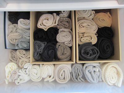 昔・・・・・「むーの引き出し開けるとさ。目が回るんだけど・・・・」と 言っていた慎ちゃん。この渦巻きは・・・・私の靴下です。昔から靴下は、このしまい方。見やすいし、渦の太さで靴下の長さや厚みが把握できます。慎ちゃんは、自分流のたたみ方があるので、彼のは渦巻きにはしませんでしたが、最近・・・・「俺のも渦巻きが良いな~~」と言い始め・・・・・私「え~~真似しないでよお~ 」夫「いいじゃんかあ~」・・・・まあ・・どっちにしろ私がたたむんだけどさ・・・・最近は慎ちゃんも、くるくる星人です。ちなみに、ニットやシャツ類はくるくるではありません・・・・私の「収納のテーマ」は、開けた時にニヤリとする収納♪どんな風に整えようかと考えていだけで、ニヤリとしてしまいます~~