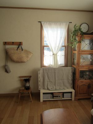 テレビは我が家にこれ1台。普段はこんな風に布でカバーしてあります。去年までは白いテーブルクロスをかけていたのですが今年からこの赤いお花のクロスにチェンジ♪このクロスは、年末の日本橋三越イベントの展示の為に作ったものです。テレビのカバーにちょうど良い大きさだったので、しっかり使っています。テレビは、必要なニュースや映画を見るためのもの・・・という感覚なのであんまり見ないかも・・・・1台あれば十分です。慎ちゃんはテレビを普通に見るのでいろいろ詳しいけれど私は情報に疎い・・・でも、私にとって、たくさんのメディア情報は暮らしていくのに特に必要ないかな・・・楽しい事いっぱいあるし♪と言う事で・・・・テレビの黒い画面はどうしても目に入ってしまうのでカバーをかけて部屋に溶け込ませています♪ちょうど良い大きさ! クリスマスのお部屋のテーブルクロスとして使いました。見てくださった皆様、どこにあったか覚えていますか~~?地味だったから気が付かなかったかも・・・・おほほほ