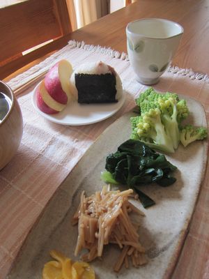 ネタが思いつかなかったので・・・・今日のお昼ごはん♪野菜ばっかり・・・タンパク質はお赤飯の豆くらい?おにぎりにしました~脂質は・・・無いかも・・・ブロッコリーの親戚みたいな野菜とほうれん草のおひたし、エノキダケの煮物・・・おみそ汁は春菊。そしてリンゴ♪・・・いつも青虫のように野菜ばかりで生きていける私です・・・ホホホ・・・マルちゃんは、ねずみのおもちゃで戦い中。蹴りをくり出して、ねずみをやっつけています。今度は、噛みつき攻撃!モモとけんかするとすぐ負けるので、ネズミでうっぷん晴らししているマルちゃんです。