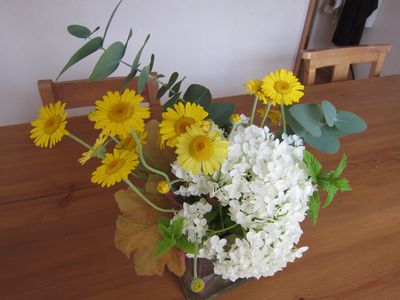 今日のリビングのお花は、これ♪お庭から摘んできたものを次々飾っています。今の見頃は、ダイヤーズカモミールやアナベル。バラが終わってしまったけれどまだまだお花がいっぱいです♪さて♪ 予定通り最後の作品が描き終わりました~~~~6月は7個無事に完成!わ~~~いわ~~~い 明日から自由の身! 7月の締め切りものも無し!庭、庭、庭いじり~~~~~~♪・・・・・・・・・・・あっ・・・・・・・・・・明日は、10時から18時までレッスンだった・・・そんじゃ、明後日から♪ 毎日麦わら帽子だな♪(←もちろんレッスンの無い時だけ)やりたい事がたくさんあって、今からワクワク♪いつだって・・・毎日を楽しんで暮らさなくっちゃねっ♪ ルン♪