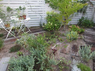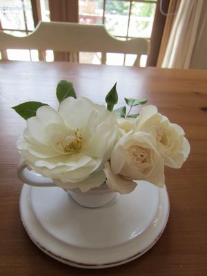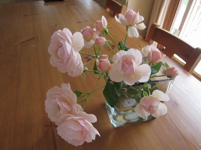 お盆の間、2日間ほど庭の手入れをしました♪慎ちゃんがお休みの時は極力仕事はしないのさ♪手伝ってくれると言うので、一緒に草むしりをしました~夏ですが、バラがちらほら残っていたので花瓶に♪これは、デビットオースチン「セプタード・アイル」です。名花「ヘリテージ」に似た花形ですが香りが素晴らしくこれだけでふんわりとお部屋が良い香り♪がんばったおかげで、お庭はきれいに整いました♪慎ちゃんは芝刈りと駐車場の草むしりをがんばってくれました~~ありがとう♪まだまだ、私のお庭いじりは続きますが、ちょっとひと段落です♪私たちががんばっているのを横目に・・・・・サバくんのんびりお昼寝です。オリーブとミモザの下で幸せそう♪