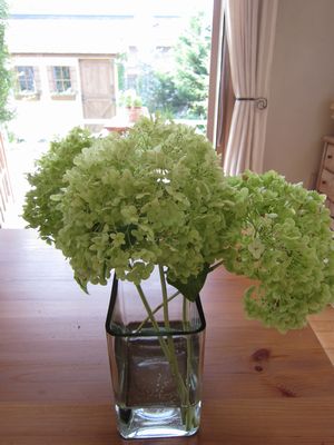 毎日暑いですね・・・と言う言葉が日々のあいさつになってしまっています。福島も35℃とか・・・・ばてるかしら?と思いきやこのあたりは、夜は寝苦しくないんですよ♪涼しい風が吹いてきて夜は快適に眠る事ができます。まわりは森と田んぼですから、遠くで聞こえるカエルの合唱が心地よい子守唄です。アナベルが綺麗なグリーンになりました。このくらいの色になるとドライフラワーにする準備です♪今年も紫陽花のドライフラワーたくさん作りますよ~~~~ばてていないとは言え、やっぱり水分補給は必要。毎朝作る麦茶をポットに詰めて、ちょこちょこ飲みます。あまり冷たくしないように温度を調節して飲んでいます♪今週は暑い日が続くようなのでみなさんも体調に気をつけてくださいね♪