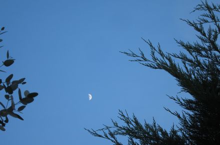 明日から名古屋に入ります♪三越さんのイベントでセミナー&デモンストレーションをします~~セミナーに参加するみなさま♪気をつけていらしてくださいね。初日からたくさんのお客様でにぎわっているようで私も会場へ伺うのが楽しみです。例のペイントボックスもた~~~くさんご注文をいただいたようで・・・・アンジュさんとても喜んでおりました♪私もホッとしました・・・・かなり大きな商品だったので・・・・大丈夫かと・・・でも、これで元気に名古屋へ行けます!掲示板やメールのお返事は27日以降になります。お盆あけても、毎日毎日暑いので、お庭が少々心配ですが水やり地図を書いて慎ちゃんに渡しました。何より猫たち・・・いやいや慎ちゃんが心配・・・カレー鍋にいっぱい作ったし、パン焼いたし、おやつも作ったし・・・大丈夫♪画像は、夕方、水やり中に撮った「半分お月さま」少しずつ秋の空になってきていますね。それでは元気に行ってきます~~~♪