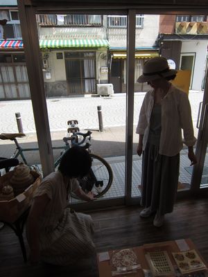 本日、通信講座マスターコースの発送をいたしました。30名の皆様♪ まもなく届きますので楽しみに待っていてくださいね~~~いよいよマスターコースです。作品は大きなものが多くなりますが完成すれば喜びも大きい♪ がんばって素敵な作品に仕上げてくださいね~さて・・・画像はなにかと言いますと・・・・・お外のネコちゃんを見ながら何やらお話し中の二人・・・・ここは、福島市にある雑貨屋「Mother Duck」さん♪東欧雑貨展やっていますよ~~~とお知らせをいただき行ってきました。南欧&北欧だと、さほど触角が動かない私でも「東欧」聞くと・・・弱い・・・わ~~いわ~い♪と、行ってきてしまいました♪彼女は、雑貨屋さんのオーナー夫妻のお嬢さん「ティビちゃん」もともと野良猫なので警戒心が強くお客さんが来ると逃げてしまうらしいのですがいつも慎ちゃんと私には、体を触らせてくれます♪ネコも「ネコ好き人間」を識別できるんだわ・・・・嫌われなくて良かった~~とってもかわいいネコちゃんです♪記念に美人な奥様とパチリ♪ ご夫婦はとっても仲良し~~私たちとおんなじ~~~~わ~~~い♪ いつも雑貨談議で盛り上がります。お店では、9/18まで東欧フェア開催中♪ お近くのかたは是非遊びに行ってみてくださいね~~~~