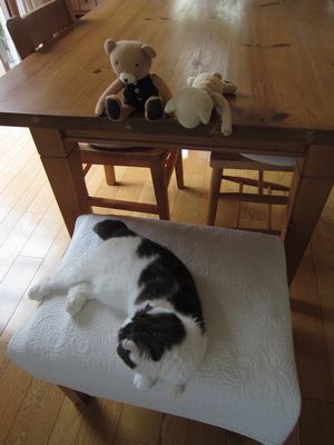 ネコ「おい・・・・下にあれが寝てるぞ・・・」クマ「あれって?」ネコ「新入りの猫だよ」クマ「あ~♪ まるちゃんね」ネコ「あいつってさ、上向いて寝るんだぜ。変な猫~~」クマ「あ・・起きたよ♪」ネコ「むっちゃん来たからだぞ。あいつはむっちゃん大好きだからな・・・」むっちゃん「マル! 覗かれてるよ~」ネコ「はうっ!! 見つかった・・・・」マル「・・・・・・・・・・・・」マル「こんにちは♪」ネコ&クマ「・・・・・こっ、こんにちはああ・・・・」