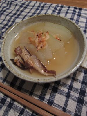8月も終わりです。明日から9月だと言うのに・・・・・暑い・・・・・画像は今日の一品♪冬瓜と桜エビの煮物です。冬瓜は夏の野菜。食べると体の熱を取ってくれると言われています。こんな暑い毎日にはぴったりですね♪冬瓜料理の中で、慎ちゃんはこれが1番のお気に入り。冬瓜と、干しシイタケと桜エビ中華スープのダシ、塩、酒だけで味付けしてあります。簡単なので良かったら作ってみてくださいね♪さて・・・こちらも 大阪の・・・アレです♪9月になったらお見せできるかな? お楽しみに~~~