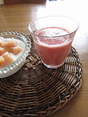今の時期、このあたりは夏野菜の収穫まっ盛り♪トマトはすぐ赤くなるので、た~くさんもらえます。どんどんピューレにしても次々やってくる♪それで毎日トマトジュースにして飲んでいます。生のトマトをジューサーにかけると綺麗なピンク色♪凍らしたトマトも少し入れれば冷たくて飲みやすくなります。慎ちゃんが「タコご飯がたべた~~~い」と言うので作りました♪私「なんで?タコ?」と聞くと慎ちゃん「そんな気分だから♪」・・・・・・へえ・・・・・・慎ちゃんは結構「気分」で決めるタイプ・・・そして、キムチスープ♪我が家は糸コンニャクで作ります。キムチをごま油で炒めて使うととってもおいしい♪暑い夏にぴったりです。暑いからこそ毎日食べるご飯は丁寧に♪我が家は夏バテ知らずです~~