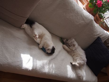 毎日寒いですね~~~でも、マルちゃんは、窓辺でぬくぬくと日光浴中・・・・・・植木鉢の受け皿を足を挟んで、爆睡。なんとも幸せそうです♪ところで・・・・結膜炎が良くなってきたモモちゃんは・・・昨日から・・・・・下痢・・・・・・・原因はわかっています。マルのご飯も食べちゃったから(←油断も隙もありゃしない)食いしん坊なのに、少ししかご飯もらえないので、すこぶる不機嫌。モモちゃんは、体重2キロちょっとのやせっぽちですが、大食いです。食べても太らないなんて・・・・・・・うらやましい・・・・・