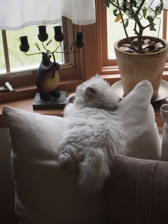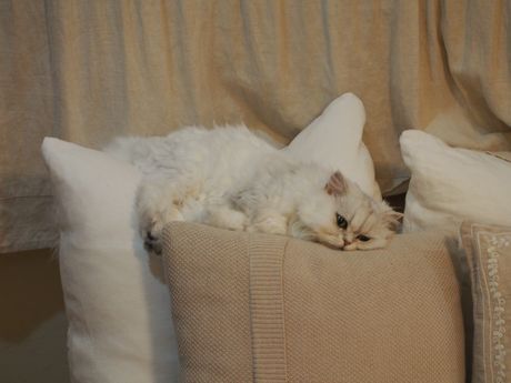 マルちゃんは今日もご機嫌だ♪綺麗に毛繕いした後、これからお昼寝タイム。私「まるちゃん~」マル「え?」私「今日も綺麗に手入れできたね~ とっても美人よお~」マル「そお~なのぉ~♪ あたしかわいいのお~♪」モモ「・・・そりゃ、どうも・・・・」