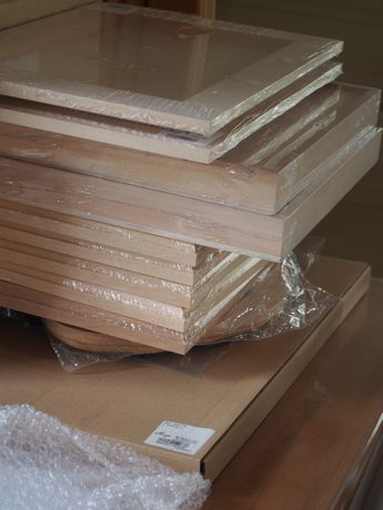 本日から日本橋三越で赤毛のアン展始まりましたが・・・・キット1種類が、初日で品切れになっているそうです。残りの2種類はまだ大丈夫です。これから6月2日まで会期がありますが、アンジュさん補充が間に合わないらしく・・・・いつもいつも本当に申し訳ありません・・・・それで・・・・・・せっかくお店に来てくださったみなさまになんとか購入してもらえるように、現在アンジュさんで検討しています。品切れしたキットを、希望者のみなさんに後日販売できるようにするそうです。詳細は、近日中、アンジュさんのHPで購入方法をお知らせしますので、もうしばらくお時間をいただきたいとの事です。みなさまには大変ご迷惑をおかけしますが、どうぞよろしくお願いいたします。さて・・・今日の画像ですが・・・・今、私のアトリエに積まれている白木です・・・・・今日やっとペイントクラフトさん次号の作品を描き終わりました。これが結構な大作で・・・描くのに5日もかかったのお・・・・・インストラクションは、なんと過去最高の7枚!!今回の作品は、細かい色指定がいっぱいあるのです・・・ヘロヘロですが、無事に終わってホッとしました~~あとはカレンダーを残り5枚・・・・と思っていたらその間に5個依頼が入り・・・こりゃ・・・・・・・かなりきついわ・・・・・・6月中に終わるかしら・・・・これは妖怪に戻って、ハイピッチで描きますぞ!ちなみに妖怪になっている時は・・・・やばい姿なので・・・・誰にも会いません・・・・・オホホホホ~~~~~
