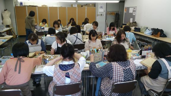 無事に福島に帰ってきました~~~画像はJDPA名古屋セミナーの様子♪参加してくださったみなさま~~ありがとうございました~~2時間と言う短い時間だったのであんまりおしゃべりできなかったのが残念・・・・8月の名古屋三越イベントで、再会できると嬉しいです♪この日は最終日・・・・ 会場は3時までだったのでセミナーが終わったあとゆっくり会場を見る時間は無く・・・・・でも、少しだけ雰囲気を味わってきました。石田和美ちゃんが会田正子先生とブースを出していました♪記念にパチリ。その日に、ダッシュで東京へ戻りました。次の日からマンスリーです~~~マンスリー第1教室のみなさま♪今回は、初級だったので時間内に完成する人が結構いました。七夕に飾ってくださいね♪第2教室のみなさまは、先月の上級作品の続き♪お休みが数名いましたが、先月より簡単だったのでみなさん楽しそうに描いていました。隔離部屋に、ちらりと見える作品・・・・・・あれは・・・・名古屋イベントのセミナー作品です・・・・7月上旬になったら募集が始まるそうですよ。それまでは、ここでお見せできませんがマンスリー参加の皆様は、アンジュさんのご厚意でしっかり見せてもらっていました♪(←ずるいぞ)そして、3日間の出張を終え帰ると・・・・・・・・・・・・マルちゃんこんな感じ・・・・・・・べったりです・・・・・マル「ママ!3日もどこ行ってたのにゃ!!」・・・・・ごめんね、マルちゃん。お許しを~~
