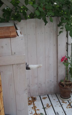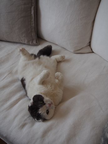 さて・・・・毎日雨模様で庭いじりがちっともできない私・・・・・つらい・・・でも!楽しみにしていることも~~~モモちゃんのオモシロ寝姿です。今日は、こんな感じ・・・・・・・・・・・モモちゃん、頭に血がのぼりませんか?・・・・・・・・・・・・なんだかウットリ顔・・・・・・まさか・・・・気絶してる?その1時間後・・・・・・・・・・どうしてそうなる?