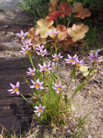 この可憐な花は、ニワゼキショウと言う野草です。アヤメ科の小さな花です。アメリカから明治時代にやってきた帰化植物。野原などに咲いていますが、2年くらい前に我が家の芝生にやってきて・・・・刈り込んでしまうのがもったいなくて花壇に移植しました♪画像はその後の元気な様子。今年も元気に咲きました・・・・と思っていたら。・・・・ん? また芝生の中に・・・・・・増えている・・・・・・・・おおおおお~っ???・・・・・・どんどん増えていた・・・・・・・うちの芝生が気に入ったみたいなのでまあいいか♪このまま置いておこうっと。花は、朝開いたと思ったら昼には散ってしまいます。次の日は、また違うつぼみが開いて、半日で散ります。花は可憐で小さく、よわよわしい・・・けれど、どこででも元気に生きていけるたくましいニワゼキショウ♪ この花が芝生を彩って、咲き終わる頃、バトンタッチするようにネジリ草が咲きます。どちらの植物も知らないうちに我が家にやってきた植物たち♪おかげで、5月から7月にかけて、芝生の中に花が咲きます。ようこそ我が家へ♪ 末永くよろしくね~~~