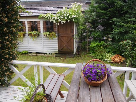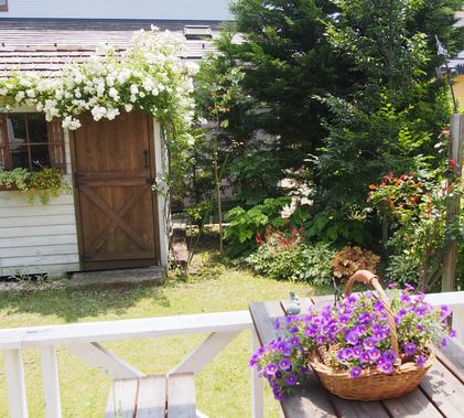 無事に福島に帰ってきています。2日間、セミナーに参加してくださったみなさま♪ありがとうございました~~~1日目はちょっと変わったお部屋でレッスン・・・・真中に大きな柱が・・・・・でも、みなさん元気いっぱいお勉強していました。今回は初心者向きの作品だったので時間内に仕上げる人が続出!さっそくおうちに飾ってくださいね♪また次回のセミナーでお会いできるのを楽しみにしています~~家に戻ったら、あまりの暑さに庭が変貌しておりました・・・・福島もずっと30℃越えの毎日です・・・・・ジュンベリーも青かったのに帰ってきたら赤いのがあちこちに。あっという間に収穫できそうです♪このジュンベリーの陰になり、ほとんど見えないのでですが・・・・実はこの枝をどかすと・・・・・裏では、アイスバーグが咲き誇っております♪私だけが知っている秘密の花園です・・・・・・・ウフフフ・・・