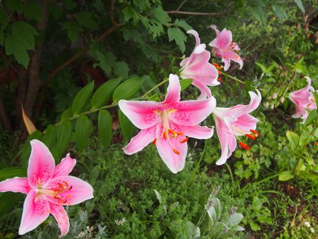 明日から東京へ出張です。マンスリーセミナーに参加する52名の皆様~~~どうぞよろしくお願いいたします~~ ・・・・・明日、明後日と天気は、曇り時々雨?・・・・・やっぱり降るのか・・・・・みなさま、傘をお持ちくださいませ。それから土曜クラスのみなさま~今月は人数少なめなので、隔離部屋は使いません。全員広いお部屋に座れますので、そちらにお集まりくださいね~~~お庭は、今、ユリが綺麗です♪ネジリ草が終わる頃・・・・ユリが咲きはじめます。いつもお庭に花が咲いているように計算して植えてあるのだ♪水道の脇にも♪一緒に写っているのは、20年近く使っているジョウロです・・・・・まだまだ現役がんばっています♪明日の出張が終われば7月の出張は終了!来週は、庭いじり週間になる予定です。作品を描きつつ毎日庭に出て・・・・・ああ・・幸せだ・・・掲示板やメールのお返事は20日以降になります。それでは元気に行ってきますね~~~~