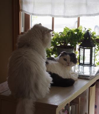 モモちゃんお気に入りの場所に、マルちゃんが・・・・・・モモ「・・・・・ねえ・・・そこあたしの・・・・・」マル「え?」モモ「お昼寝したいんだけど・・・・」マル「ふあああ~~~~~っ」マル「・・・・・ヤダ・・・・・」モモ「・・・・チッ」マル「え? ・・・・・えっとお、マル全然聞こえないんだけどぉ」モモ「・・・・・・・仕方がないなぁ・・・・端で寝るか・・・・・」マル「・・・・・イシシシシ・・・・♪」・・・・・・悪魔の顔・・・・・・