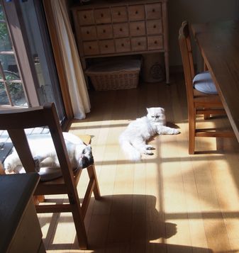 今日はとてもお天気が良くて気温も上がりました♪二人とも日向ぼっこ・・・いや、日光浴?・・・・・ジリジリと、なんだか暑そうなんですけど・・・・・・マル「ねえ! ママもこっちおいでよ♪」私「・・・・・やだよ。暑いもん」マル「暑くないよ! ねえっねえっ おいでよお~~~」私「・・・・・・・・日焼けするから嫌だってば」マル「ねえ!モモちゃんもママに、おいでって言ってよ!」モモ「・・・・・・・・・・・・・・・・・・・・・」マル「ちぇっ・・・・つまんないのお~~」・・・・・マルちゃん・・・・ママの日焼けはね・・・・命取りなのよ・・・ (↑1年中日焼け止め塗っている人)猫にはわからないわよねぇ・・・・・オホホホホ~~~