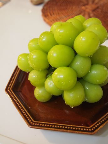 山梨産の「シャインマスカット」慎ちゃんが買ってくれたあ~~~~これ大好き♪ 皮ごと食べられるし~スーパーのフルーツ売り場で、よだれジュルジュルの私を不憫に思った慎ちゃんが「買ってあげるよ♪」って・・・お小遣いで買ってくれたぁ超ご機嫌なむつみちゃんは、ブドウのお皿を頭に抱えて「ありがたやの踊り」を慎ちゃんにご披露しました。そして、これから食べるのだ♪ わ~いわ~い♪ 出口むつみ!これからもがんばります~~~