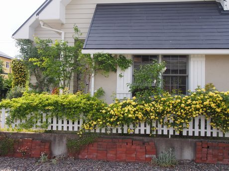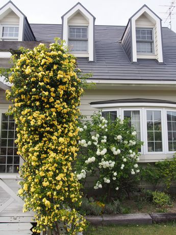 昨日は、久しぶりに恵みの雨が降りました。このところ福島県は雨不足・・・・農作物が心配されていたので一安心♪我が家の駐車場側のモッコウバラも見頃です。隣の白モッコウバラはこれから♪・・・・・・はて? なにやら視線を感じます・・・・・・・・・・ん?・・・・モモちゃん発見・・・・・・