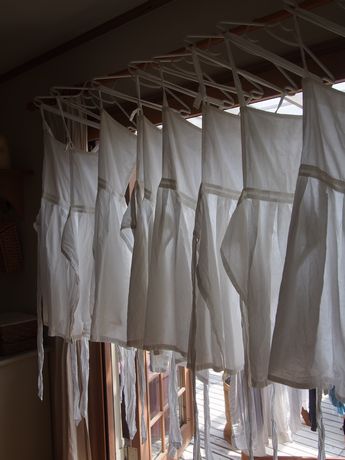 プランタンイベントでスタッフが着るエプロンを洗いました♪毎日暑いのですぐ乾きます。慎ちゃんは、毎日「何か手伝う事ない?」と聞くのが日課になってしまいました。私の状況を1番近くで見ているので、彼としては、何か手伝いたいらしい・・・でも、頼める仕事が・・・・あまりないのよ・・・・段ボールたたんだり、捨ててきたり。荷物を積み重ねてもらったりとか・・・「ねえ!なんかないの? ねえ~ねえ~ 俺手伝うからさあ~」そう言いながら、私の後をつけ回す慎ちゃん・・・・・・・・ああ・・・・邪魔で、よけい仕事が進まない・・・・・・そうだ!! これならできる!「慎ちゃん~ このエプロンにアイロンかけてくれる? 会場のスタッフが着るのよ♪」「うんうん♪ かけるかけるう~ オレアイロンがけ上手だからさっ」・・・・喜んでエプロンを持っていった慎ちゃん・・・・・・役に立った喜びをかみしめているのか、超ご機嫌だ・・・・・明日から、3日間連休の慎ちゃん。何かお手伝いを探さなくっちゃな・・・・・・オホホホホ~~~~♪