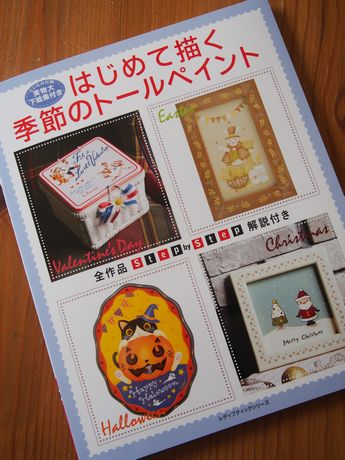 ブティック社さんから26日発売の本です~~~「はじめて描く 季節のトールペイント」初心者さんにはぴったりの本ですよ♪私が担当したのは、イースター。マジシャンのウサギがジャグリングしています♪ステップバイステップが付いているので描きやすいですよ~~~~ちなみに・・・私これ・・・いつ描いたのか覚えていません・・・・・・たしか新刊本の作品に集中していた頃に描いたような・・・・・・・1日で描いて、夜にニス塗ってインスト作って、次の日編集者へ送ってしまう・・・いつもこんな感じなので忘れてしまうんです・・・・・トホホホ・・・そんな私はダメダメですが、この本はすばらしいですよ!!どの作品も、描き方がしっかりついていて至れり尽くせり♪ぜひぜひ購入してくださいね~~~~~~