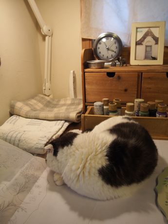 今日は風は少々冷たかったけれど良いお天気でした。静かなリビングでは、マルちゃんもぐり込んでお昼寝中。良く見たらソファーと一体化したモモちゃん発見・・・・・・・・・・・白いから、わからないのよね・・・・・・おおおお~~~~っ! でっかいあくび・・・・・・・・・・・・・別の生き物になっております・・・・・・ああ・・・我が家は、今日も平和に過ぎていきます♪