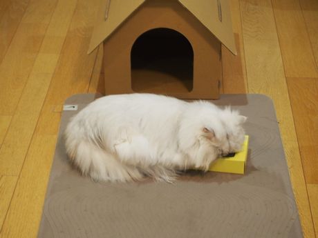 ・・・・・・どうした? モモちゃん・・・・・先日ペットショップさんからいただいた爪とぎを気にいった2匹は毎日これを取り合っている・・・・・・今日はモモちゃんの勝利だったらしい・・・・・・爪とぎを抱え、突っ伏して寝ている・・・・・・窒息しないのか?・・・モモちゃん?モモ「あ?」・・・・・人相悪すぎ・・・・・・去年のマルちゃんとの戦いは、2勝136敗のモモちゃん。お正月から1勝をあげてご満悦♪今年は勝ち越すぞ!と固く誓うモモちゃんです。