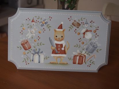 11月、12月のカレンダー作品です♪今年人気だった猫ちゃんを描きました~~~クリスマスのプレゼントは・・・・魚です・・・・・こちそうです・・・