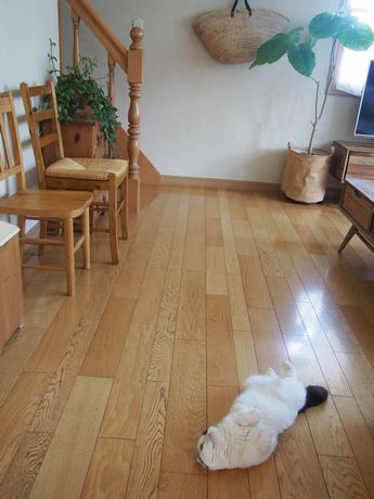 ええ・・・・っとお・・・・・本日、福島県は気温36度を超えました・・・・・・・見よ!! このギラギラしたおそとを!!外で働くのは少々危険な状態です・・・・明日は37度になるんだとか・・・・・微熱よね微熱。・・・・・そして、マルちゃんは案の定・・・・・・・・・・はい・・・やっぱり・・・・この恰好です・・・・・・・・・・目がうつろだ・・・・・私「マルちゃん元気? お腹出してると涼しいの?」マル「お腹じゃないよ。背中が冷たいの~~~」・・・・ああそうなんだ。床で背中冷やしてるんだ・・・・私も床に背中つけてみようかしら♪みなさまも夏バテに気をつけてお過ごしくださいませ♪