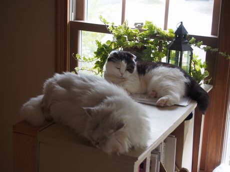 ・・・・・マルちゃん、窓辺でなにやら考え中?・・・・・・マル「・・・・・・はあぁ・・・・」私「マルちゃん どうしたの?」マル「だってさ・・・・モモちゃんいないんだもん・・・・」私「・・・え? いるでしょ」マル「いないよ・・・・おねえちゃん どこ行っちゃったんだろ・・・」モモ「・・・・・あたし、いるよ?」・・・・・あ!!・・・・・わかった・・・・モモちゃん数日前にシャンプーに行ったんだ・・・・・香水のような匂いがしているうちは、モモちゃんを別の猫と認識しているんだっけ。モモちゃんが近づくと「シャーシャー!!」言ってたわ・・・・・マルにとっては、今は「モモちゃんに似ている猫」不思議だわ・・・・猫は、仲間を見た目より匂いで判断するのね・・・・人間は・・・見た目よね・・・・匂いより見た目重視!!だからだまされるのかぁ?? (←なんのこっちゃ)