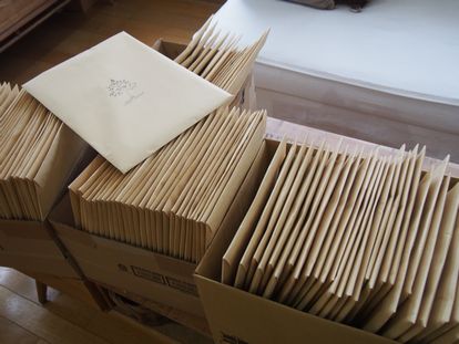 名古屋イベントのスペシャルセット!準備しております~~~封筒に11種類のデザインパックを入れ終わり値札もつけました♪予約してくださったみなさま。27日にお渡ししますので楽しみにしていてくださいね~~~~そして、バラ売りの方も準備OK。少しづつですが、販売しますのでバラ売りが欲しいのよ~~と言う人はがんばってお買い物に来てくださいね。ちょっぴり早歩きで♪明日は、直筆作品や他の商品の値札つけするんだ~~~私は基本こつこつやるのが好き♪だから、こう言う孤独な作業は楽しくてしょうがない。コツコツ時間をかけてやると言ったら「トールペイント」・・・・だから私はトールペイントが好きなのだ・・・・植物の成長を見守りながら、年月をかけるガーデニングも大好き!時間や日数をかけないと完成しない「編み物」「刺繍」「裁縫」もだあ~~~いしゅきっ♪なんで好きかって言うと・・・時間をかけた分だけ完成した時の喜びが大きいから~~だから、その喜びに向かって、こつこつやるのが好きなのよん。ルン♪