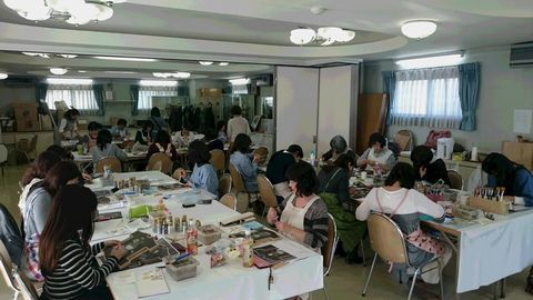 無事に福島に帰ってきています~~~2日間のレッスンに参加してくださったみなさま♪本当にありがとうございました!画像は、ペイント塾、土曜クラスの皆様。今年最後のレッスンは、イギリスでした♪みなさん楽しそうにタータンチェックのリボンを描いていましたよ。来月はペイント塾お休みです。その間に、溜まっている作品・・・・描いちゃいましょうね・・・そして来年は、元気に水道橋でお会いしましょう~~~~日曜日は、名古屋でザビエルセミナー♪ちょっとお休みが多くて残念だったけれど、みなさん楽しそうに描いていましたよ~・・・・・雨だったのは本当に申し訳なかったけれど・・・・・参加してくれた愛知常滑教室の生徒さん達~~~~~私に会うのが初めての生徒さんも多く。午前中は、みなさん緊張気味・・・・・・でも、午後からはワイワイ楽しそうに描いていましたね♪みんなで撮った写真をいただいたのでさっそくブログに載せました~~小さく載せたのでお許しを♪来年も行くから待っててくださいね~~~そして、今回のセミナーのお世話係を担当してくれた直ちゃん♪本当に良く頑張ってくれました~~~~素晴らしい会場だったし、準備も撤収も完璧でしたよ♪来年も会いに行くからね~~~~オホホホホ~~