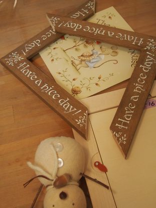 こちらの、ラブリーな色合いの作品は、来年1月のマンスリー作品です♪アンジュさんの会報誌が届いているみなさんは、もう知っていますね~~新しい年を明るい色でスタートさせたくてこのデザインにしました。このデザインは、ペイントクラフトに掲載された「ブレーメンの音楽隊」とお揃いなんです♪ぜひ一緒に描いてもらいたいわ~~~~~~縁と取っ手のベースは、何も色を塗っていません。白木のままなんですよ♪そのままシーラーを塗って、白い模様を描いてニス塗っただけ。色合いがやさしくて良いわあ・・・・♪お申し込みは、アンジュさんまでお願いします~~それから、本校の生徒の皆様にお知らせです。2017年の1月2月のレッスンは、諸事情によりお休みいたします。12月のレッスンが終わると、次回のレッスンは3月からとなります。12月のレッスンの際に、来年のレッスンスケジュールをお渡ししますね。どうぞよろしくお願いいたします♪
