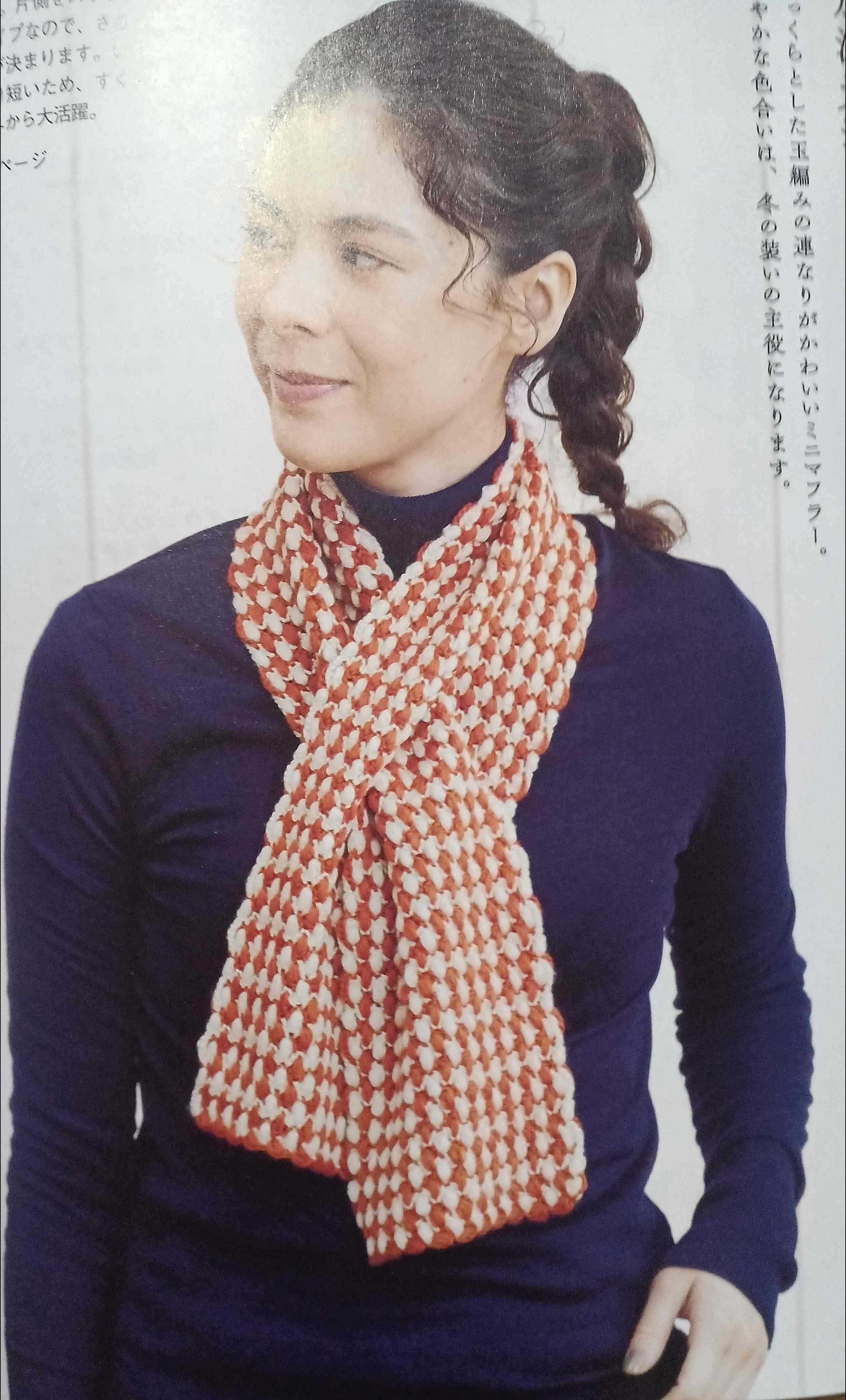 で、広瀬光治さんの「変わり玉編みのミニマフラー」はこんな感じです。