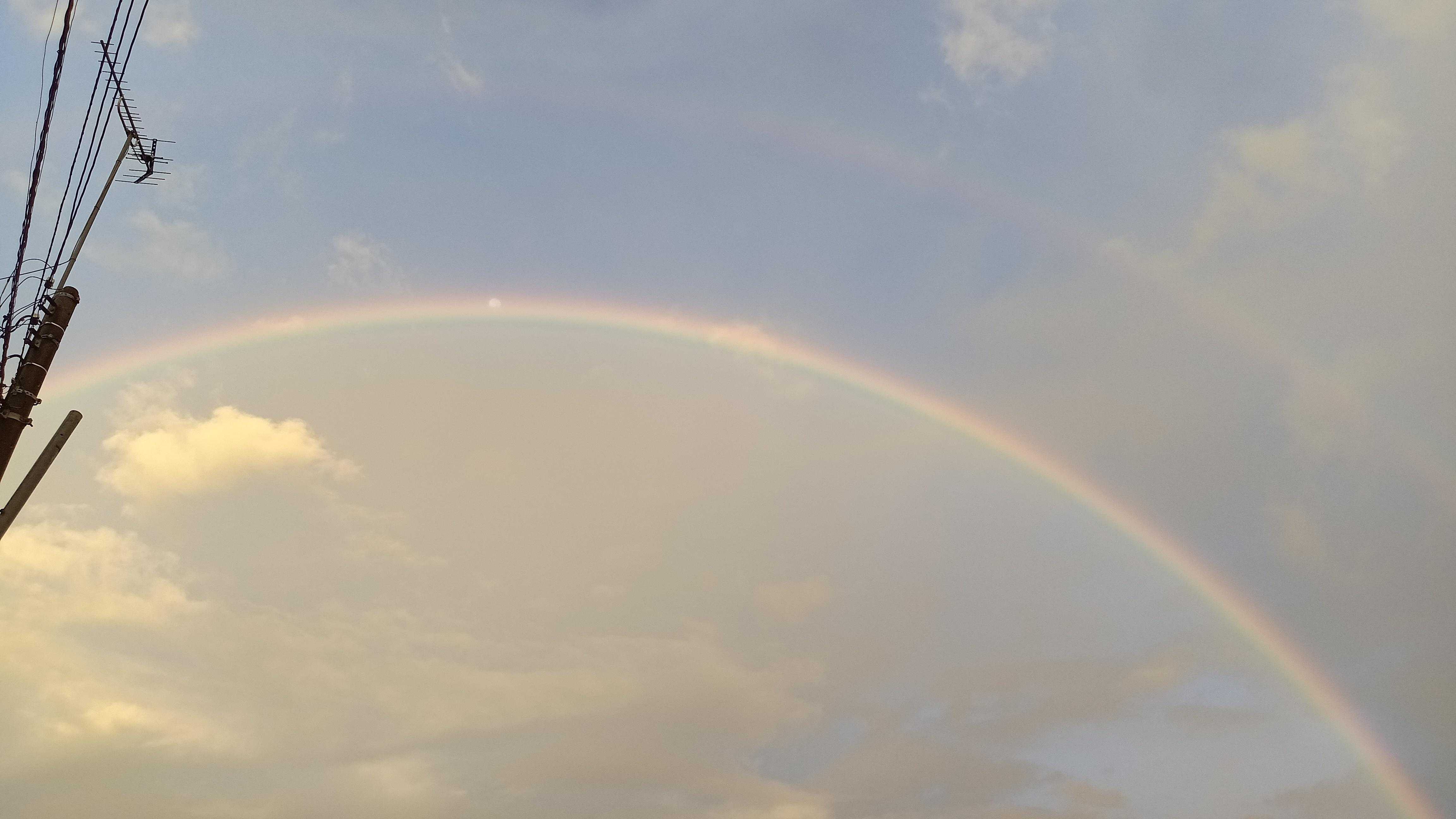 2025年9月11日(木)朝6時ごろ、玄関の外に出ましたら空に大きな虹がかかっているのに気が付きました。よく見ると、もう一つうっすらと虹が。二重の虹、すごくきれいでした。ちょうど外に出ていらしたご近所さんたちに声をかけ、みんなで虹を鑑賞。そしてね、我が家の駐車場に目をやると、置いた覚えのない長い紐がある。ん?って思って近づいたら、何と蛇!!!棒の席で突っついたら、もう固くなって死んでいます。夫が片付けてくれましたが、首のあたりに噛まれた傷があるということで、ああ、お隣の外猫ちゃんの仕業かなあって思いました。猫が蛇に果敢に向かっていく姿、岐阜の実家で何度も見ていました。自分の体の何倍もある大きな蛇にだって、猫は攻撃を加えやっつけます。猫にとっては、自分のテリトリーに入ってくるものは攻撃の対象なのです。それが大きな犬だって、容赦はしません。その背中に飛び乗り威嚇するので、犬は尻尾を撒いて逃げていきます。午後になり、雷と大雨。記録的短時間大雨情報が、15時過ぎ発表されました。大田区・品川区などは、1時間に120mmを超える大雨ですって。孫たちの帰宅時間にあたるので、心配でLINEしました。小学校では、帰宅時間を遅らせる学校での待機を決めたようです。次女、いつもなら15分も乗らない山手線に40分以上乗っているとのこと。でも孫たちは無事に帰宅したようで、一安心。夜のニュースでは、品川駅のホームに入っているJR山手線、滝のように電車の車体を流れる雨にドアをを開けることもできない様子が写っていました。その品川区を流れる立会川・世田谷区の谷沢川などでは、氾濫発生情報も出され越水のあったところもあったようです。高層住宅が建ち並ぶおしゃれタウン武蔵小杉も、いたるところが浸水。大きな傘も役に立たない雨で、タクシー乗り場は長蛇の列。皆さん帰宅にはご苦労をされましたね。このところの異常な天気、さて明日はどうなるのかなあ。