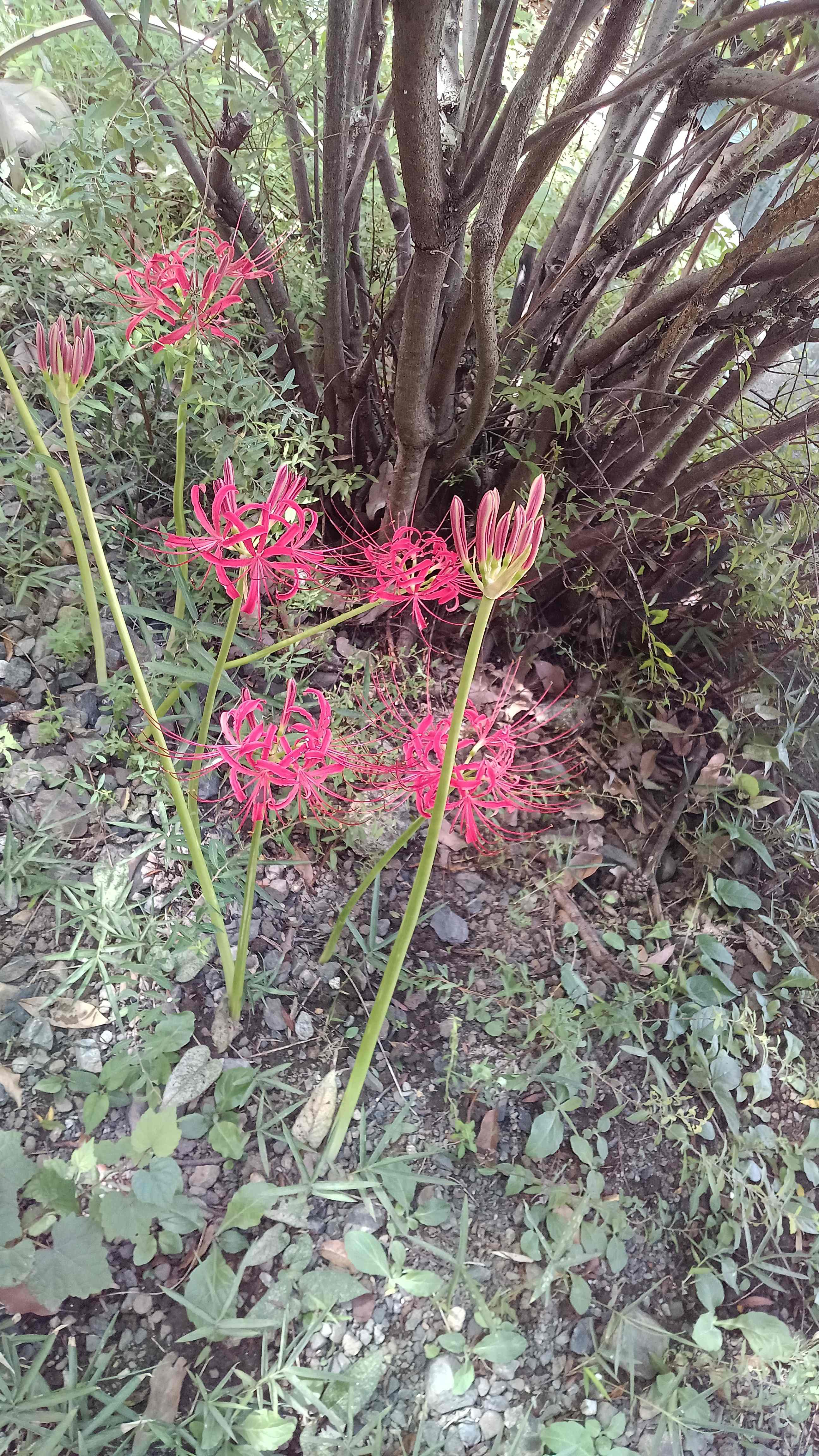 2025年9月22日(月)日曜日と祝日の狭間の日です。今日は肺のレントゲンと胃のバリウム検査を申し込んであったので、会場まで出かけました。朝食抜きです。受付を済ませて、問診のコーナーへ。「7月に背骨の圧迫骨折をしましたが、だいぶ様態が良くなりましたので検査を受けに来ました」と告げたところ、問診の医師の顔色が変わりました。「今年の7月ですか?それでは固い診察台でバリウム検査を受けるのはとっても危険です」って。「寝返りもできるようになりましたので、大丈夫だと思うのですが」と私が言うと、「とんでもない。回転したり頭を下にしたりしなければいけないので、骨折を悪化させてしまう恐れがあります。今回は見送ってください。できれば1年は我慢してください」って。ということで、胃のレントゲン検査はできませんでした。レントゲン車に入ると看護士さんがすぐ私の衣類のふくらみに気が付かれて、「これは何ですか?」って聞かれました。「コルセットです」と答えると、「ゆっくりでいいですよ」と優しい言葉。肺のレントゲン検査はあっという間に終わり、いざコルセットを身につけるときになると、さりげなく看護士さんが手伝ってくださいました。レントゲン車を降りるときも、カーテンを持ち上げ足元を明るくして下さって、「急がないで確実に足を置いて降りてくださいね」って。ということで、医師や看護師さんにたいそう見守られながらの検査になっちゃいました。この検査に申し込んだのは、もう何か月も前。その時はこのよう身体の状態になるとは、夢にも思っていませんでした。せっかく朝食を抜いていったのに、ちょっと残念。でも医師の言われることはごもっともなので、致し方ありませんね。帰り道に見た曼殊沙華。