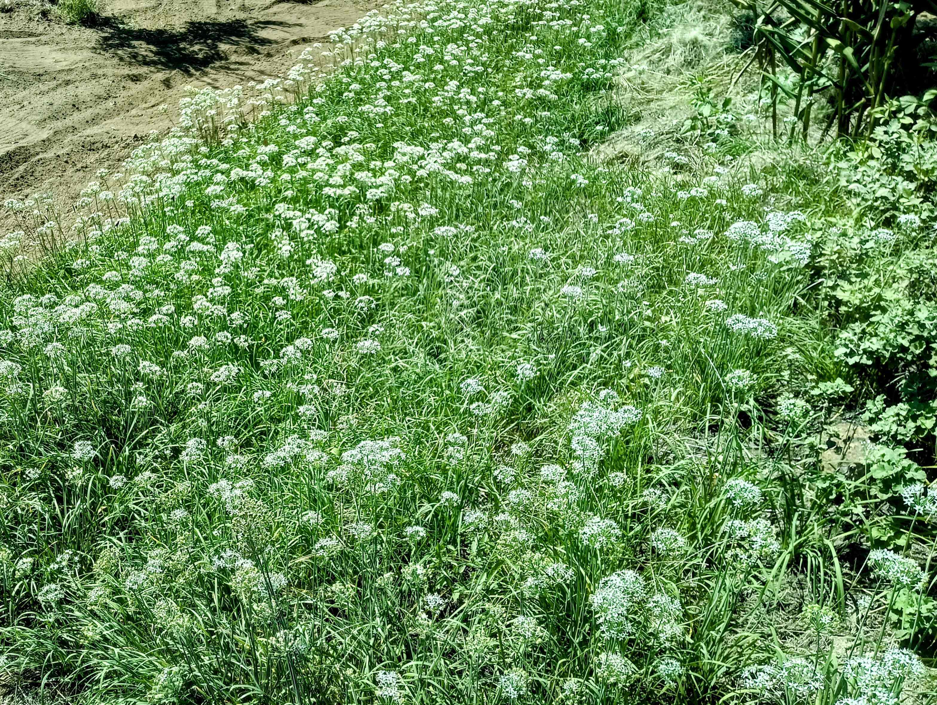 2025年9月26日(金)暑い夏がもうすぐ終わりそうです。半袖のTシャツで過ごした日々ですが、そろそろ長袖が欲しい。屋根裏収納庫に上って衣装ケースを見てみましたが、コルセットの上から着られるようなTシャツは見当たりません。では、ユニクロへ。広い売り場を右往左往しましたが、少しゆったりしたデザインの長袖Tシャツは見つけられず。デパートや専門店のお店を覗いても、これというものがなく・・・。なにも購入できませんでした。食品スーパーへ移動。今年は、ありがたいことに好物のミカンがお安い。ミカンんと里芋と、あと少々の物を買って帰路につきました。今夜は里芋の煮物にしよう。家の近くの空き地を通ったら、真っ白な小さな花がいっぱい咲いていてきれい!!ニラの花です。小さなお花も、群生しているとなかなかの迫力。「すてきだよ、君たち」って、話しかけてみました。