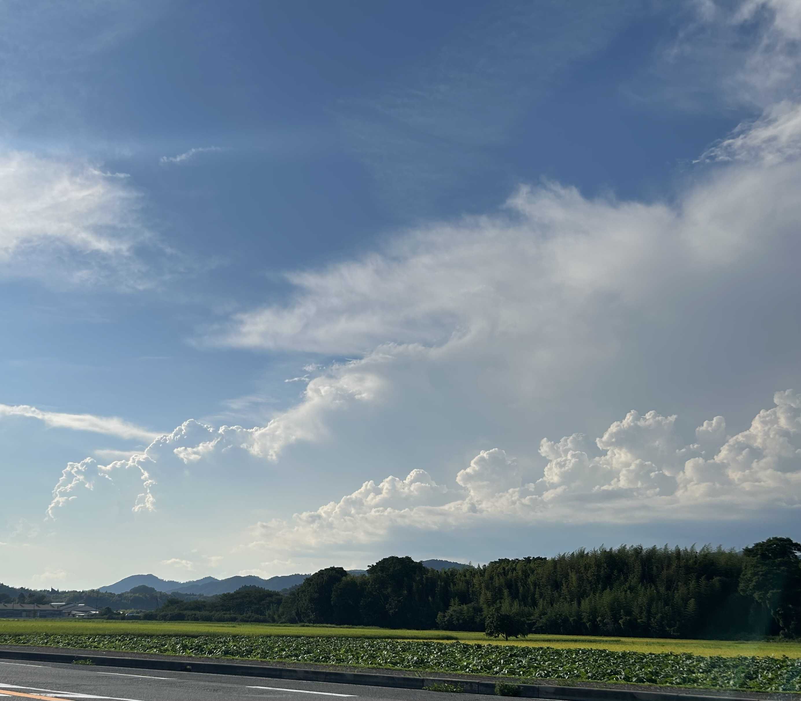仕事帰りに立派な雲達を見かけたのでパチリ☁️夏っぽいのと秋っぽい雲が混雑してるのかな🤔雲には詳しくないけど目を引いたので撮りました📸この辺りはもう少し季節が進むと、夕焼けが空一面に見えて秋の虫もめちゃくちゃ鳴いてて最高な場所です。山間の広々とした田んぼの中を通る道で仕事帰りにロードスターの屋根明けて走るのに1番好きな辺りです🚙初めの頃は「最高や〜最高や〜🙌🙌」と叫びながら走って帰ってました😅 最高のオープン通勤区間🚙