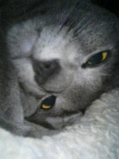 枕元のベットで眠るれおにゃん。夜中にふと目覚めると、目があうことがあります。2006.7.29 12:57 PM