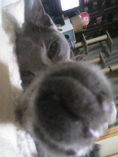 れおにゃん、怒りのパンチ! きのうはハードな一日だった・・・。ひさびさの現場のお仕事。4時間しか寝てないのに23時間も起きてたの~。ほぼ徹夜ぢゃ~んかああ。ううう。疲れたよう~。もう、あんまりハードなのは無理。でも、きのうは楽しかったから、気持ちがついていってるからね。身体はつらいけど精神的にはだいじょーぶ。れおにゃんも、今朝(午後出だったから昼?)は、いつにも増してあまあまだったのですにゃーん。わたしの帰りが一日遅いだけならあまあまにゃんこだけど、これ以上だとスネオになります。ということで、きょうはパソコンは封印して、携帯からの更新です。2006.12.20 22:12 PM