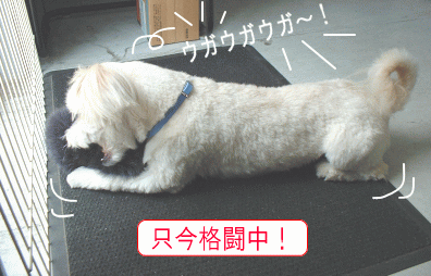 毎日、雨つづきですが ようやく午後になって明るくなってきました。関東地方 今日は梅雨明けなるか?さてさて、今日のレオくんはというと吠えています! 後ずさりしながら懸命に・・・時にはこんな所からのぞいては様子を伺っています何に吠えてるかと言うとコレです・・・コレが大キライなレオくん笑っちゃいますね!何にみえるんでしょうか?あまりに吠えるので ”一喝”あらあらイジケテしまいました。