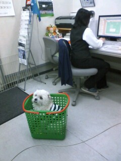 やっほ~い!!待ちに待ったママの新車が来たよ! いいね~ボクの指定席も見てくれい! ボクだけの特等席だよ~。。。 緑のランドリーBOXに乗って、いつもママと事務所に来るんだよ。 ちゃんとシートベルトも締めてるから安心さ~。 乗り心地抜群 見晴らしも最高! でも、写真にボクが乗ってないのは失敗作だったなあ。 カッコいいとこ見せたかったのに・・・ ママ~今度はちゃんと撮ってくれよ! 「はい、はい。」