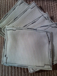 湯飲みとセットにしようとコースターを作りましたワッフル生地でじゃかじゃか縫いです♪ ←面白い物発見 ナイスデザイン・ナイスネーミング 笑