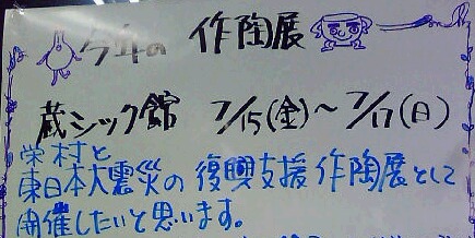 教室に復興支援作品展のお知らせが。今年(7月)恒例の作品展 復興支援作品展にするとのこと。これから、セッセト作りたいと思います。がんばろう 日本!