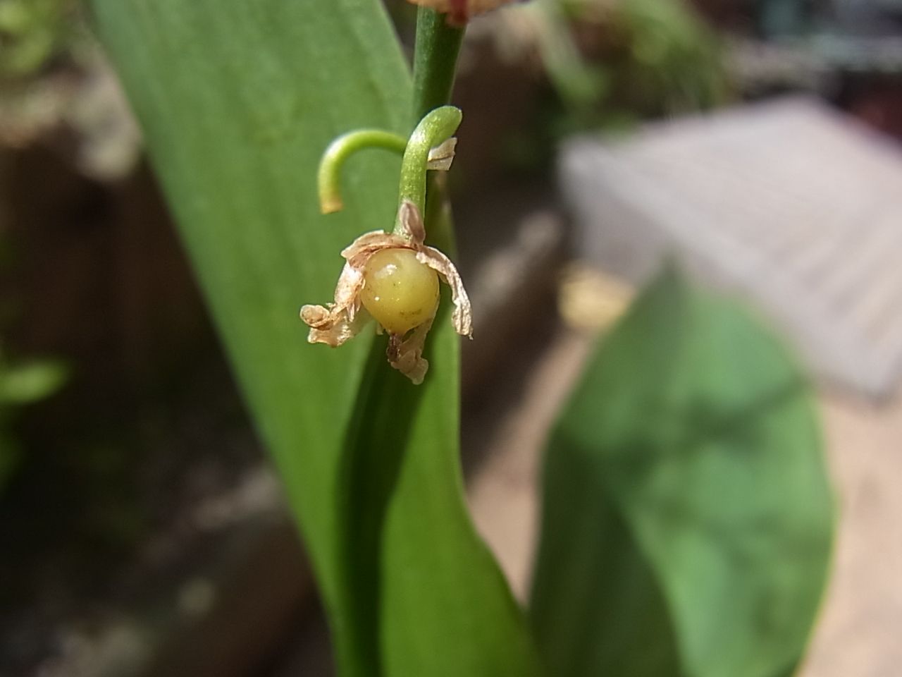 スズランの花が咲き終わって、色あせてむなしく落下していく中、、、