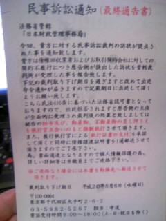 今日、こんな葉書が届きました。見るからに怪しい文面です。債権回収業者に対して、契約不履行があったため、原告が訴状を提出し受理された云々・・・※連絡がない場合には本書を勤務先に郵送します。だって。電話して文句を言いたいところですが、相手の思う壺。無視するのが一番ですね。