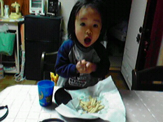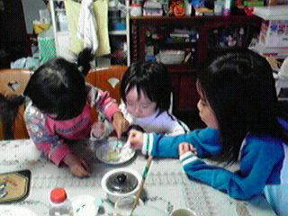 今日は、半年ぶりにリクの歯医者に行ってきました。目的は、検診とフッ素。以前、5月ぐらいに初めてフッ素を塗ってもらったリク。やっぱり半年に一度は塗らないと意味がない・・・ということだったので・・・歯医者は、ママの実家の近くなのでミーコはとうちゃんに預けてリクと2人、実家でくつろぎついでに行ってきました。歯磨きが好きなリクは歯医者も嫌がりません。まぁ、歯医者さんでは痛いことされたことないしね^^;ってことで、診察室に入るときは、ちょうど遊びに夢中になっていたので軽く逃亡してましたがけっこう素直に、イスに(ママの膝の上)座り、歯科衛生士さんのいうとおり、口も大きく開けてたしおとなしかったです。先生に診てもらう時も泣くことなく、超素直。良い子ちゃんでした~♪フッ素加工♪完了です。でも、一つショックなことが・・・以前、とうちゃんとお出かけした時にイスから落ちて唇を切った・・・と、日記に書きましたがその時に、歯も打ったらしく最近になって、ちょっと黒っぽくなってきてたんです。それが心配で、今日先生に相談してみると・・・う~ん、打ったときに歯の神経やられてますね・・・きっと。と言われてしまいました~やられた神経は復活しないそうで、しばらくは黒いままだそうです><;ただ、乳歯なので永久歯に生えかわれば、キレイになるそうです。それを聞いて、少しだけ安心しました。まぁ、しばらくの辛抱ですね。このまま治らないとか言われたらとうちゃんボコボコにされてましたね・・・ママに(笑)。で、今日はママの実家には、姉の子供達もみんな揃っていてかなり賑やかでした。姉は、最近3人目を出産したばかりなのでしばらく実家に居るそうで、上の子2人は保育園が休みの週末だけ実家に来ているそうで・・・リクにとっては、イトコ同士。3人とも嬉しそうで・・・リクは特に大ハッスルしてました(笑)。やっぱり子供は子供同士が一番楽しいのでしょうね。姉の子は、前にも書いたように3姉妹。上の子達は、男の子であるリクがすごく可愛いらしくずっと一緒に遊んでましたね。↑バナナを必死で食べている3人です(笑)。(←君たちは、サルかっ!!)姉の一番下の子も、歩くようになりうちのミーコも歩くようになれば子供5人、きっと大にぎわいですね^^;バァバは、正月とお盆がコワイ・・・と言ってますが・・・本当に楽しそうなリクを見て帰ろう!と言い出せなかったママ・・・ちょっと帰りが遅くなってしまいました(笑)。そして、『おい森』日記。今日は、あまり森ができなかったのですが住人の家を訪ねると・・・ロビンがダンボになっていました。アンジェイさんの村から引き継いだ白目ロビン・・・写真も貰ったし(←かなり苦労したけど)けっこう長く村に居たので、快くバイバイしたいと思います。たぶん、明日から明後日に日付が変わる頃にこの村を離れるかな~