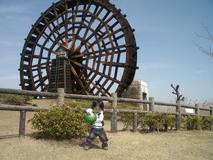 今日は、朝からとってもお天気が良かったので家族みんなでお出かけしてきました~最近、開通した新名神を通って滋賀県へ。やっぱり新しくできた高速は、かなりキレイで、スイスイ~って感じで気持ちよかったです。そして、目的地は『能登川水車&カヌーランド』滋賀県なのでそれほど遠くはないのですが、ちょっと途中渋滞に巻き込まれ2時間ぐらいかかってしまいました。ここは、大きい風車がメイン!?でけっこうな迫力でした。湖があってボートにも乗れたりするし広場もあり、ちょっとしたアスレチック的な遊具もありかなり楽しめました。リクは、今までで一番の大興奮!!公園に着いた瞬間もうテンション上がりまくりで、ママを引っ張り広場へ急がす。最初はボールを追いかけ回し遊んでいたリクでしたがしばらくして、遊具を見つけダッシュ!!リクの大好きなすべり台がありまたまたテンション上がりまくり(笑)。ちょっと大きめの滑り台だったので最初滑ったときに、勢い良すぎてしりもちついてました(笑)。『オシリいた~い^^;』って言ってた(笑)。それ以降は、下でママが受け止める係り^^;滑るときに、『ママ~下におすわりして~』とのお声がかかります^^;すべり台の他にも、揺れる吊り橋!?みたいなのもあり、それにもちょっとハマッたようで遊んでました。お昼ご飯も食べず・・・遊びまくり。必死で説得してやっとお昼を食べたのは1時半になってました。でも、かなり遊びが気になるようであっという間にまた遊具のところへ・・・・よっぽど楽しかったのでしょうね。今日は、ミーコにも靴を履かせ芝生の上に置いてみました^^;まだ歩けないけど、靴デビューです。2人で仲良くほのぼのしてました。こういう光景を見ると、やっぱり兄妹っていいなぁって思っちゃいます。結局、4時間みっちりその公園で遊びリクは久々に完全燃焼したようで『帰るよ~』って言っても、それほどごねることもなくけっこう素直に車に戻ってくれました。で、車に乗ったリク・・・さぁ、出発!!って瞬間にはもう爆睡(笑)。本当に疲れたみたいです。でも、揺れるのがコワイらしくて超ゆっくり歩いていました(笑)。